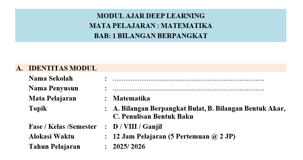 guruniknas.com – Download Perangkat Pembelajaran Deep Learning Matematika Kelas 6, sesuai CP 2025. Bahan Ajar Deep Learning Matematika Kelas 6 dibagi menjadi dokumen utama (Modul Ajar, CP 2025), dan dokumen…