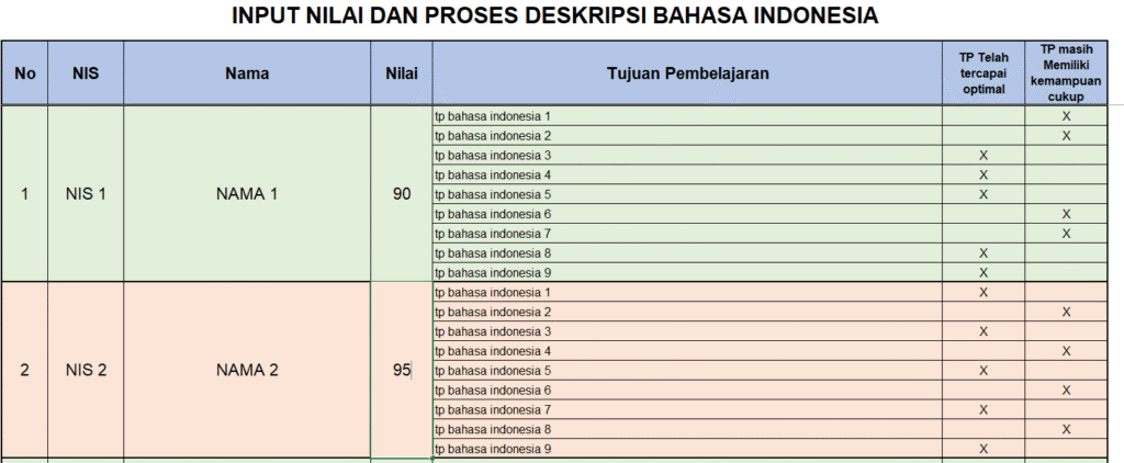 2. Deskripsi Rapor Cukup dengan Ceklis Tujuan Pembelajaran (TP)
