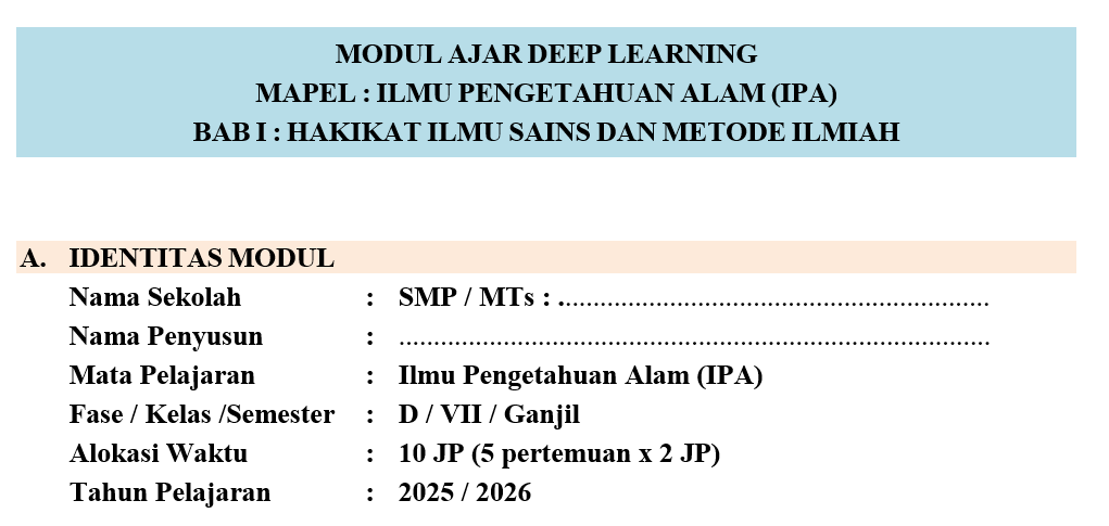 guruniknas. com – Download Modul Ajar Deep Learning IPA Kelas 7 Semester 1 Lengkap. File modul ajar IPA Terpadu deep learning kelas 7 Semester 1 kurikulum nasional yang akan admin…