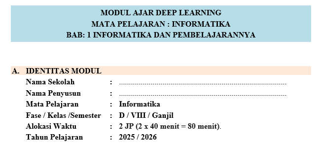 Download Modul Ajar Deep Learning Informatika Kelas 8 Semester 1 Lengkap